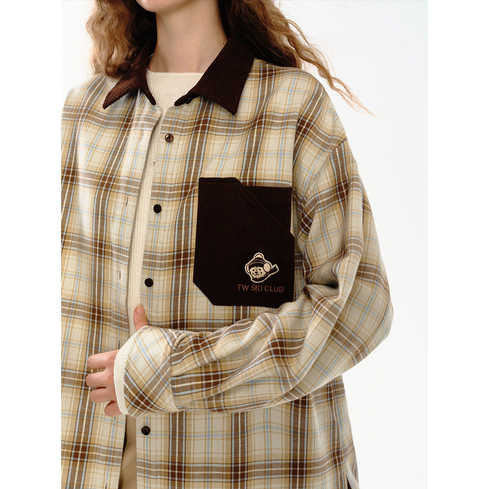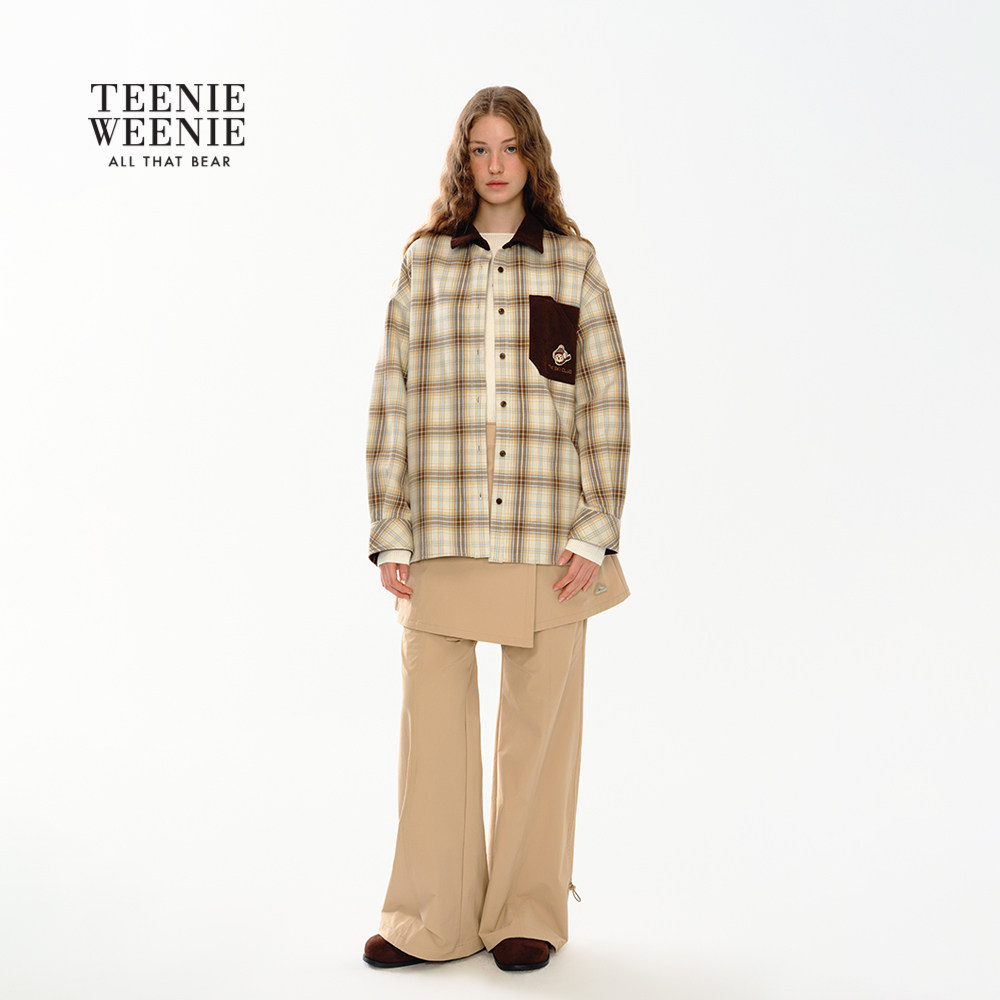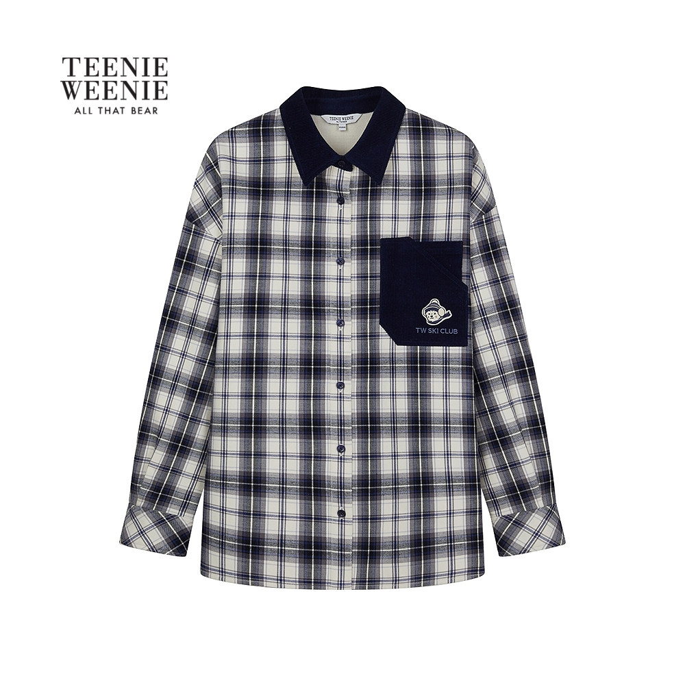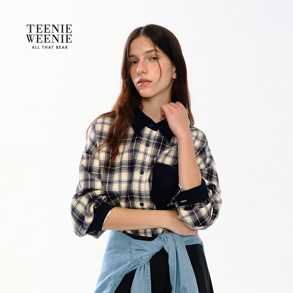 TeenieWeenie小熊女装衬衫2025冬季新款时髦撞色彩色格纹长袖衬衣