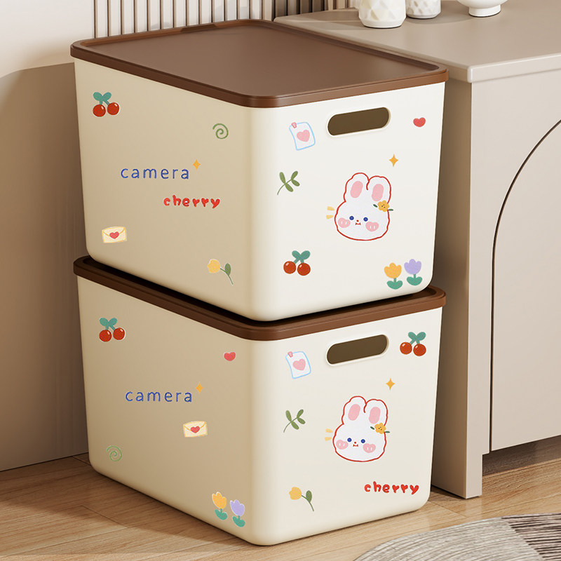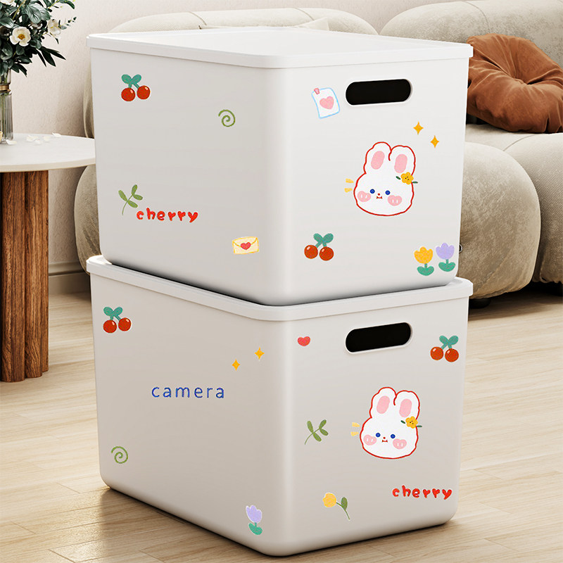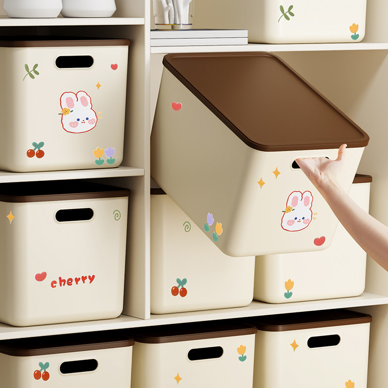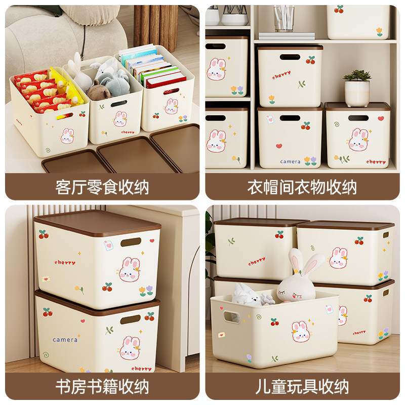 桌面收纳盒零食杂物玩具塑料整理筐家用长方形带盖收纳箱储物盒