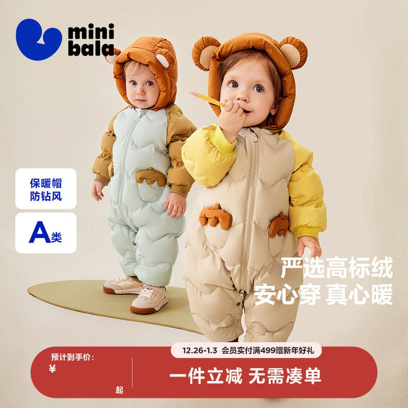 【三防】迷你巴拉巴拉宝宝羽绒连体衣婴儿爬服加厚保暖2025秋新品