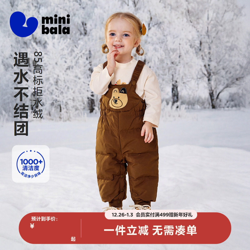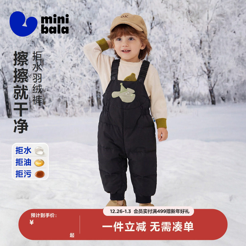 [拒水羽绒]迷你巴拉巴拉男女童宝宝羽绒裤2025冬新品保暖三防长裤
