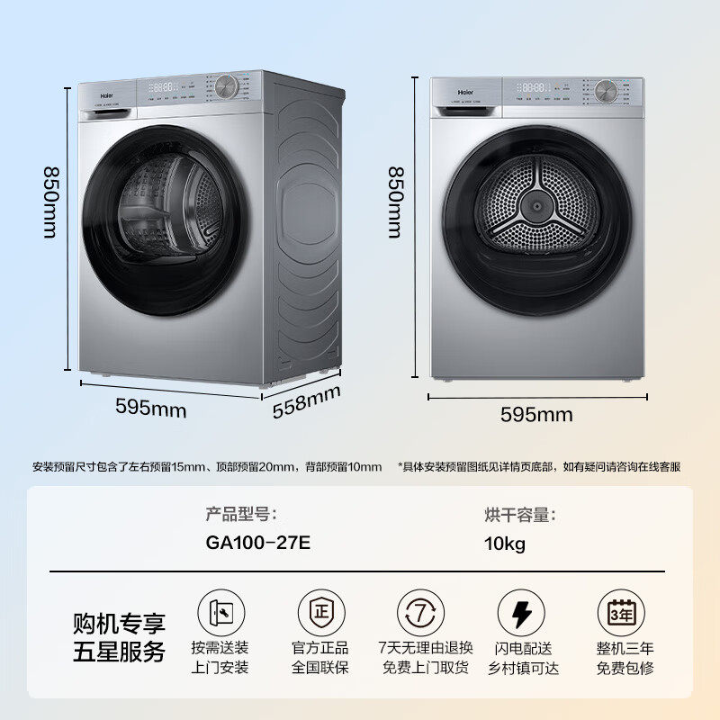 焕新补贴 | 海尔热泵烘干干衣机超薄健康除菌螨27E官方旗舰
