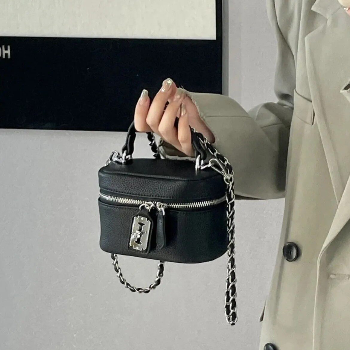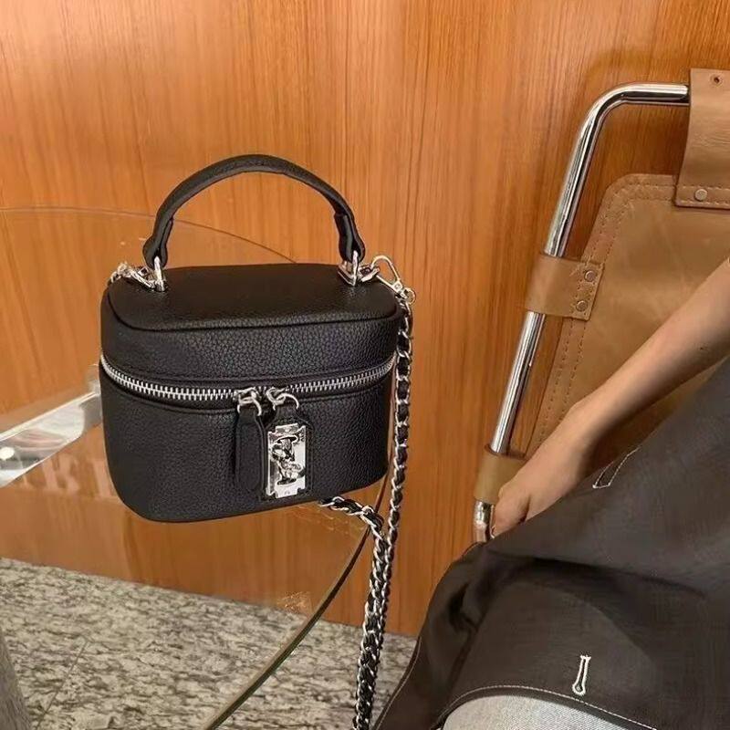 盒子口红包2026新款荔枝纹包包链条手提包斜挎小方包黑色白色肩包