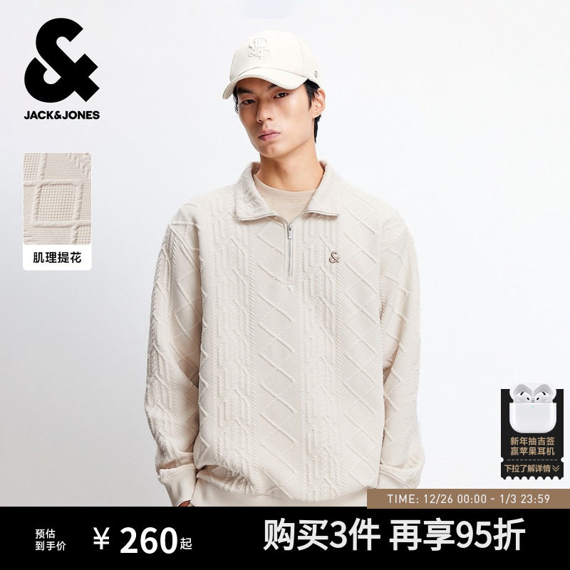 【肌理面料】杰克琼斯男装2025年秋季新款半拉链宽松卫衣外套刺绣