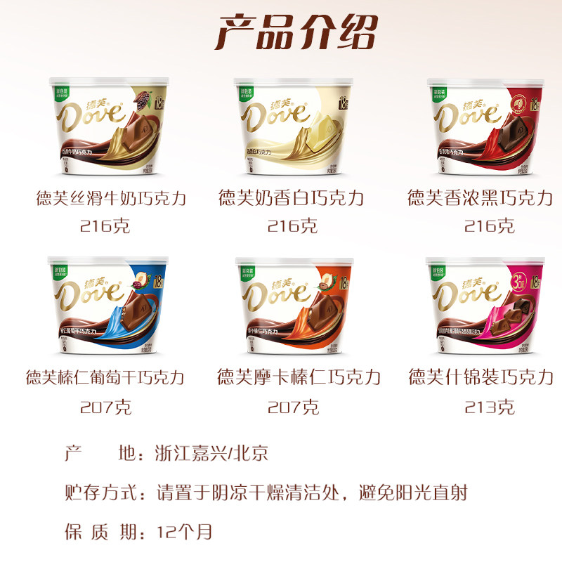 德芙丝滑牛奶巧克力216g*2碗纯正可可脂经典碗装儿童小零食糖果