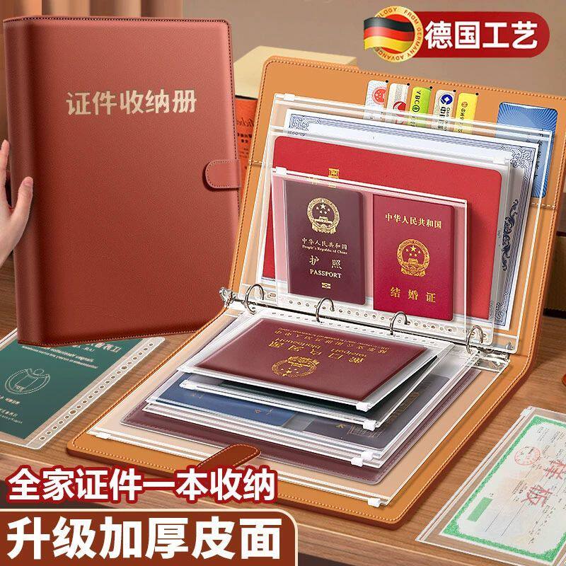 家庭证件收纳册资料a4实用型房本证书票据出生证和疫苗本保护套大容量卡包册家用多功能收纳包加厚皮面活页