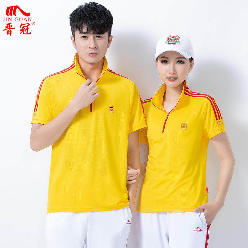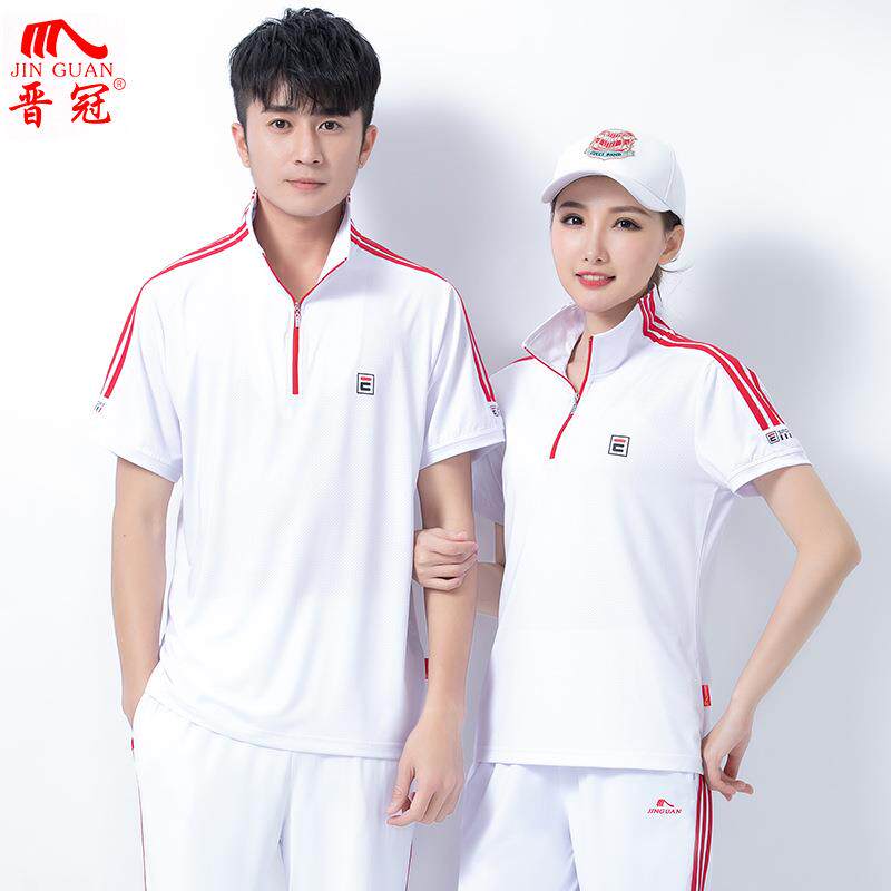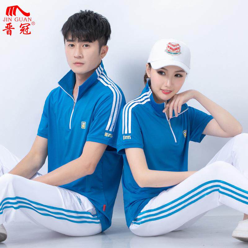 晋冠夏季半袖立领运动服套装女男短袖T恤佳木斯广场舞演出团队服