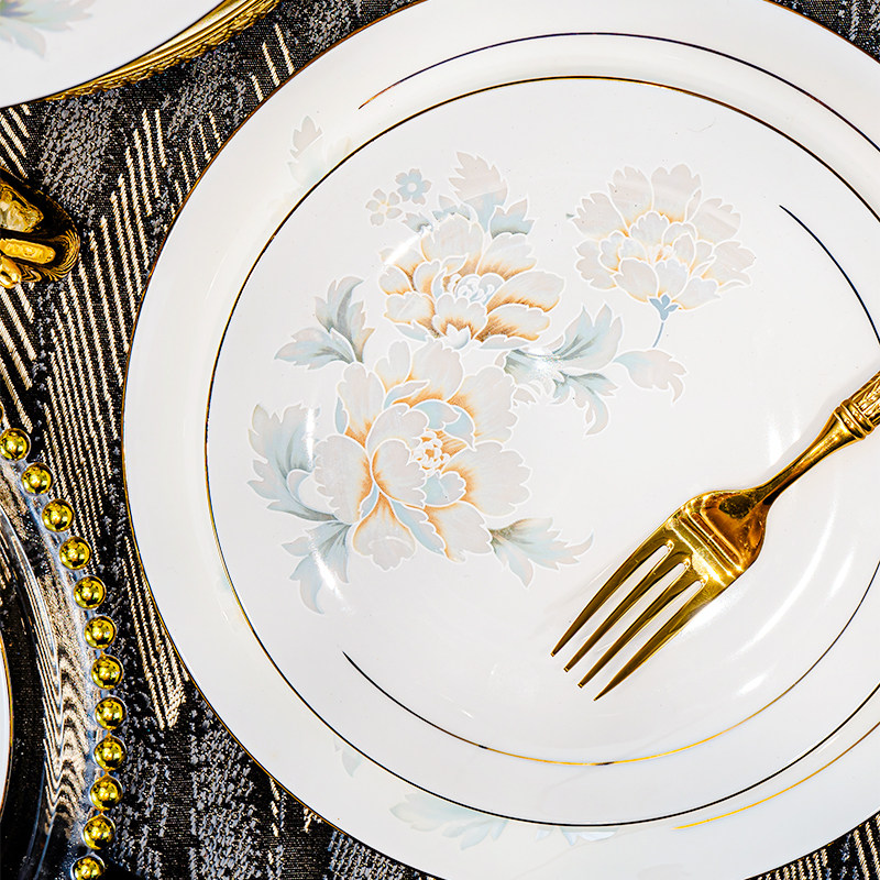 景德镇陶瓷餐具盘子菜盘家用时尚轻奢方盘简约法式盘子高温瓷碗盘