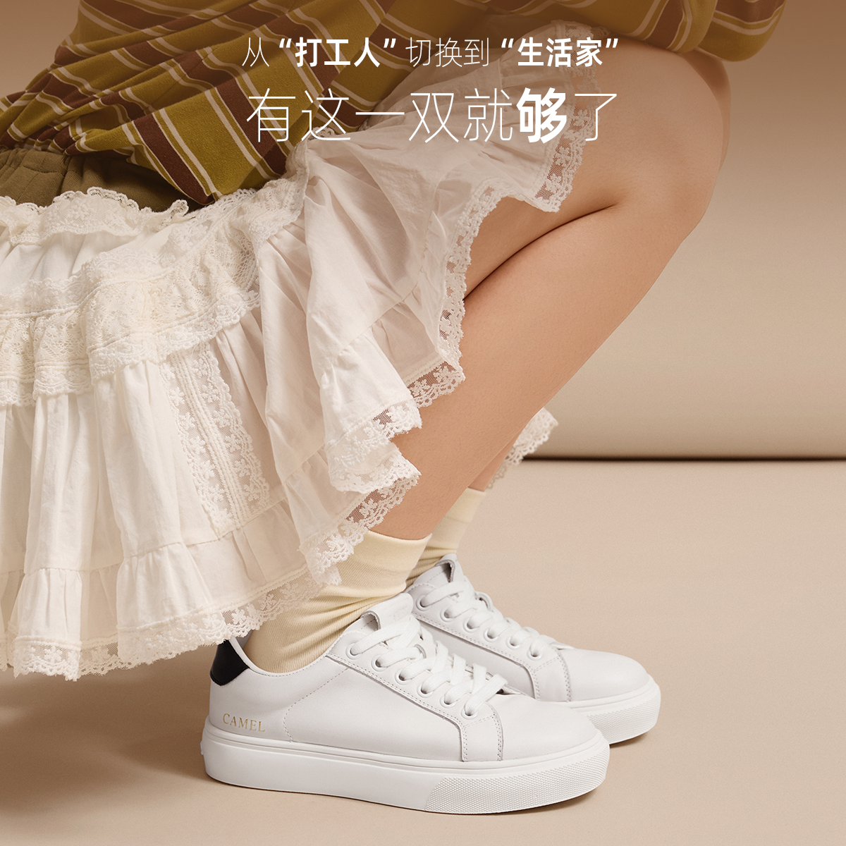 骆驼女鞋2025冬季新款真皮百搭休闲鞋板鞋女低帮小白鞋女运动鞋子