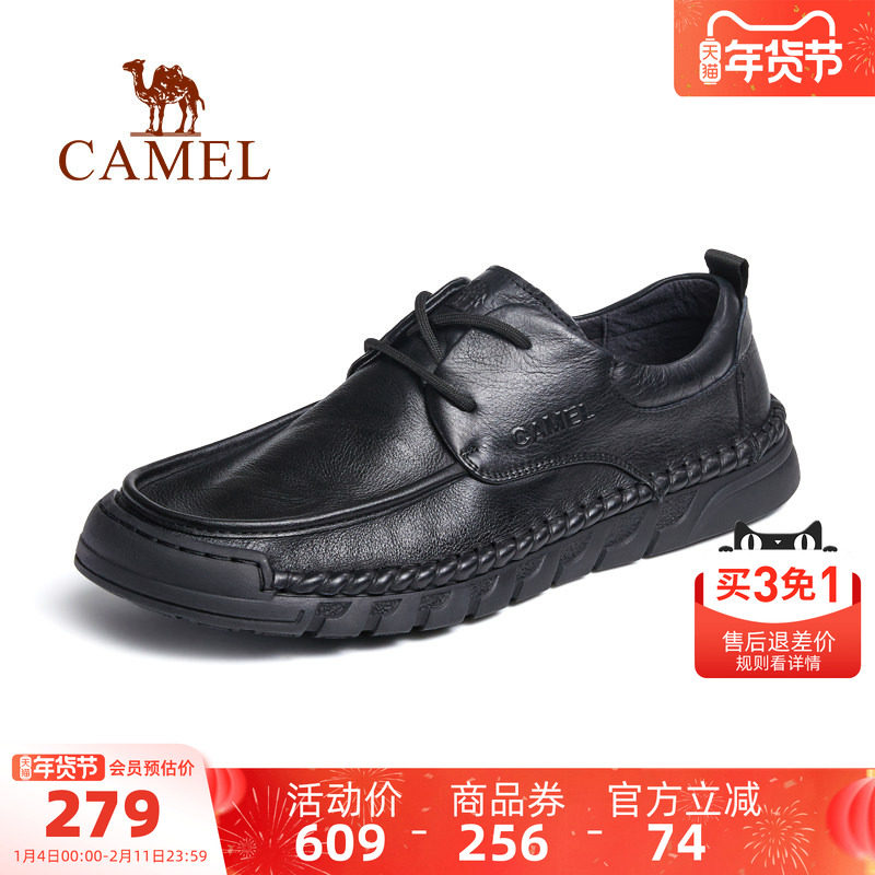 骆驼男鞋2025秋季新款柔软牛皮轻盈防滑经典商务皮鞋男乐福豆豆鞋