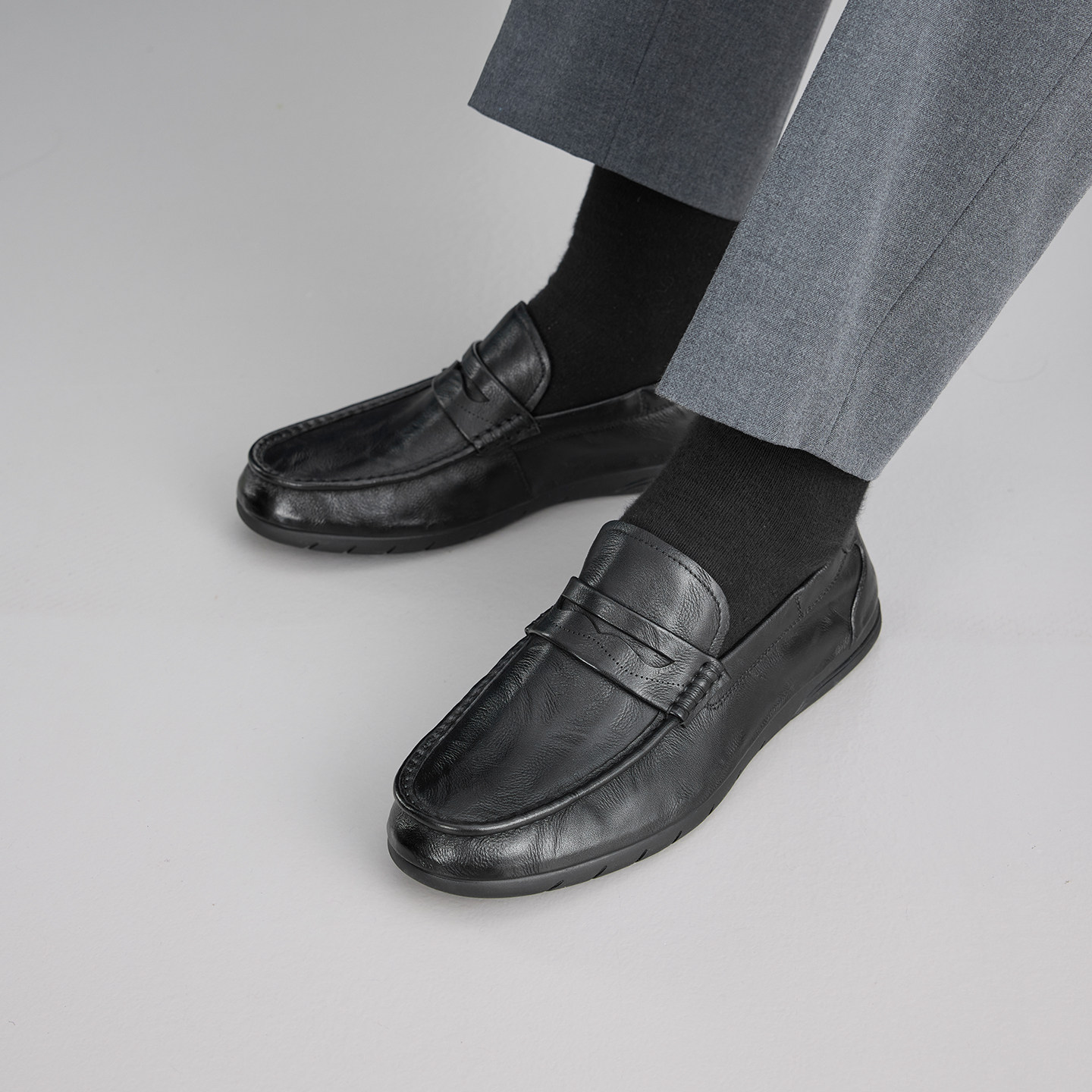 AMBSOM*意大利进口胎牛皮一脚蹬乐福鞋 真皮褶皱皮鞋 休闲皮鞋
