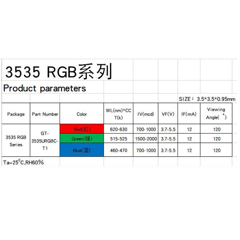 3535贴片LED灯珠RGB发光二极管红绿蓝三色适用显示屏RGB灯珠
