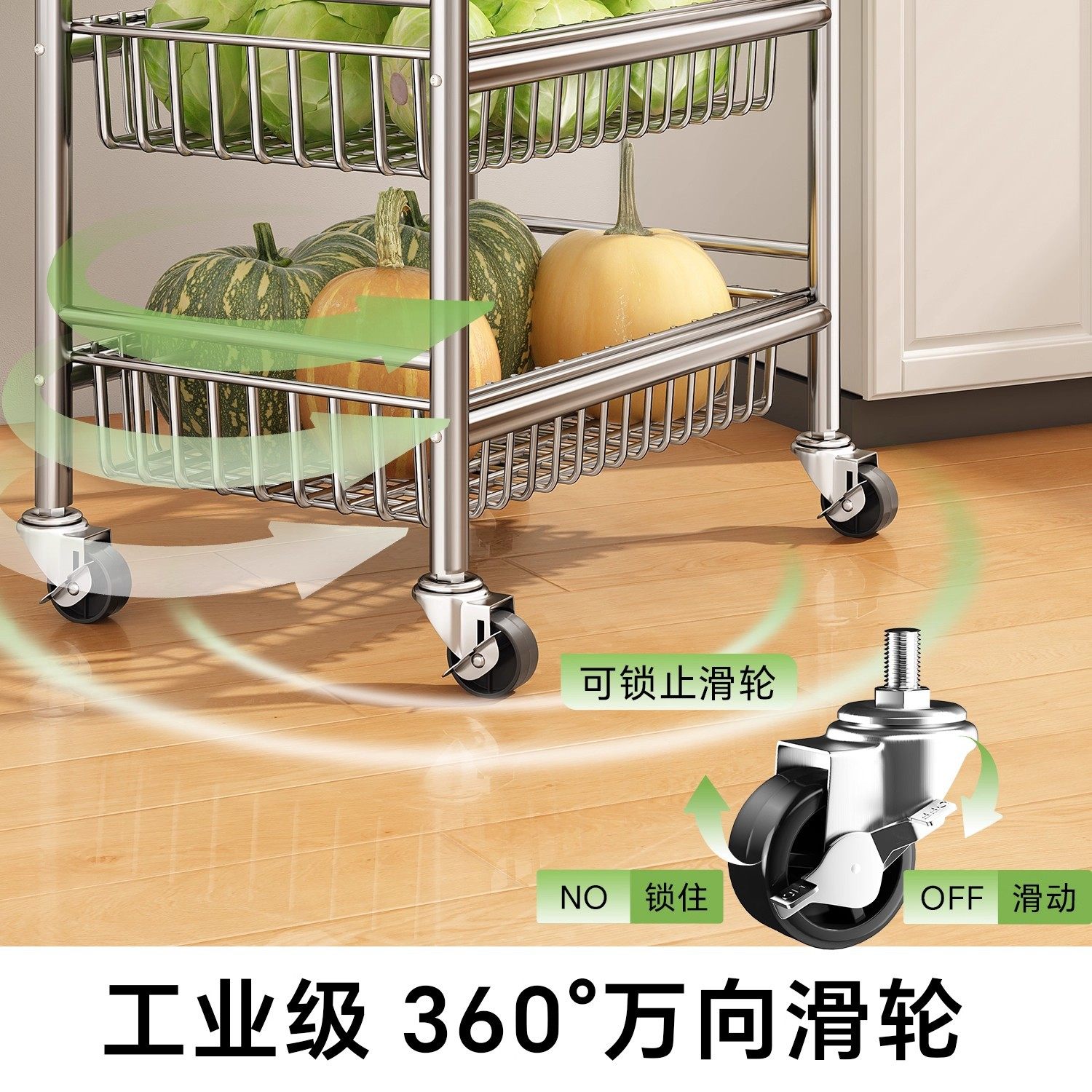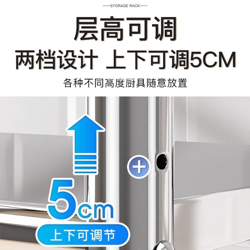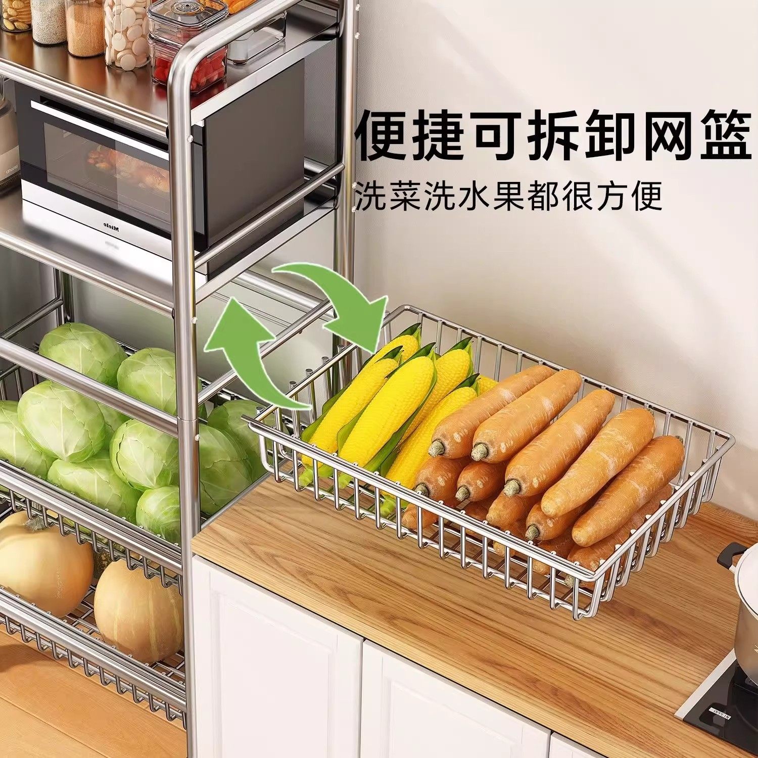 厨房不锈钢置物架家用落地多功能果蔬微波炉收纳架多层小架子货架