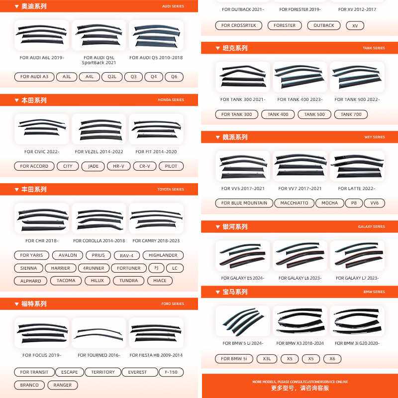 源头热销全系列SUV越野汽车改装配件晴雨挡车窗防雾遮阳挡板外饰