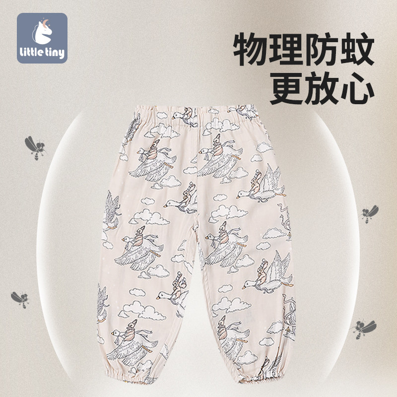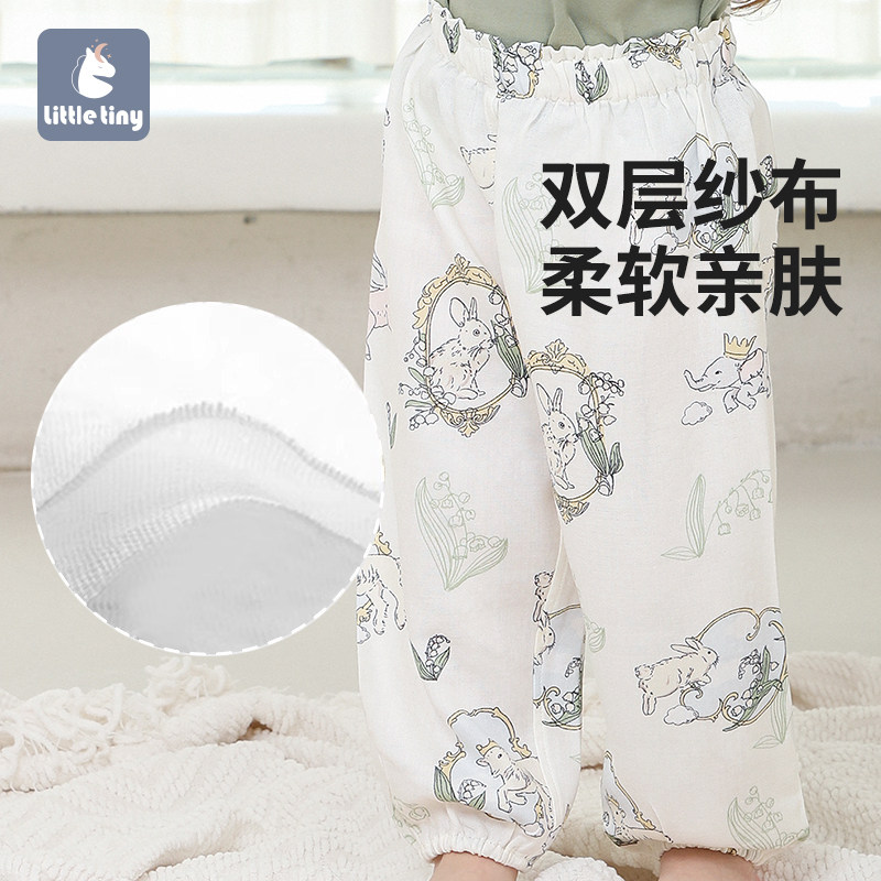 littletiny儿童防蚊裤夏季纱布灯笼裤宝宝透气薄款束脚裤透气四季