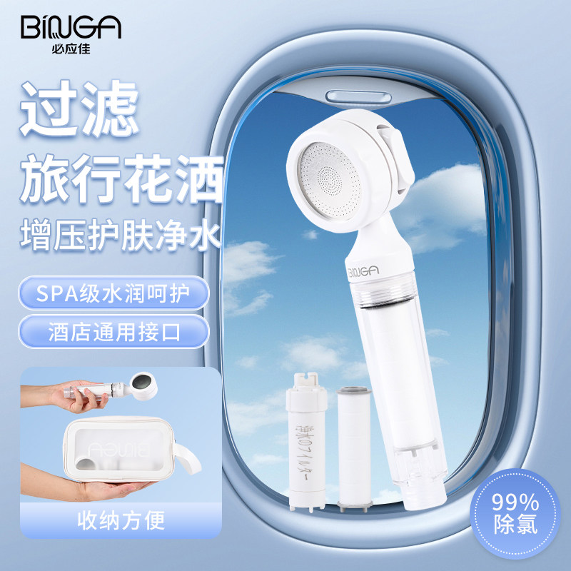 binga旅行花洒过滤器轻巧便携式迷你淋浴喷头差旅通用除氯净水器