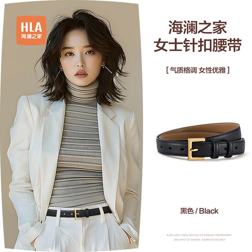 海澜之家女士针扣皮带真牛皮商务休闲腰带年轻人裤带潮流新款通勤
