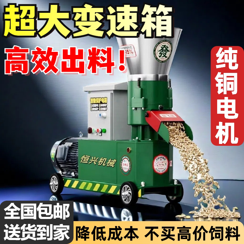 饲料颗粒机干湿两用全自动鸡鸭鹅猪制粒机秸秆造粒机大型饲料机