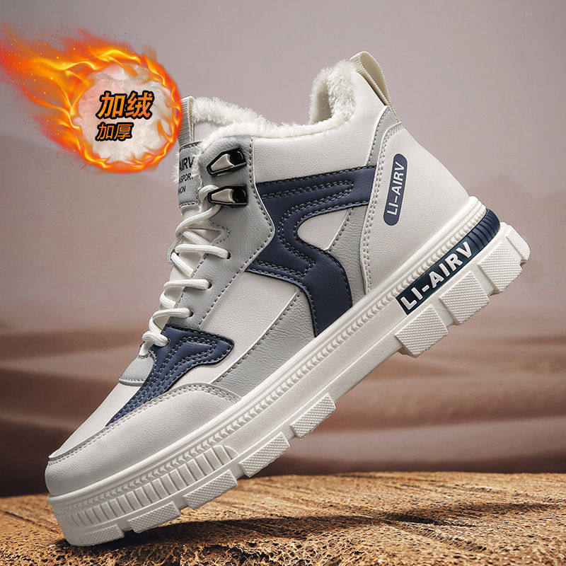 高帮男鞋冬季加绒加厚保暖棉鞋运动休闲帆布厚底回力增高小白板鞋