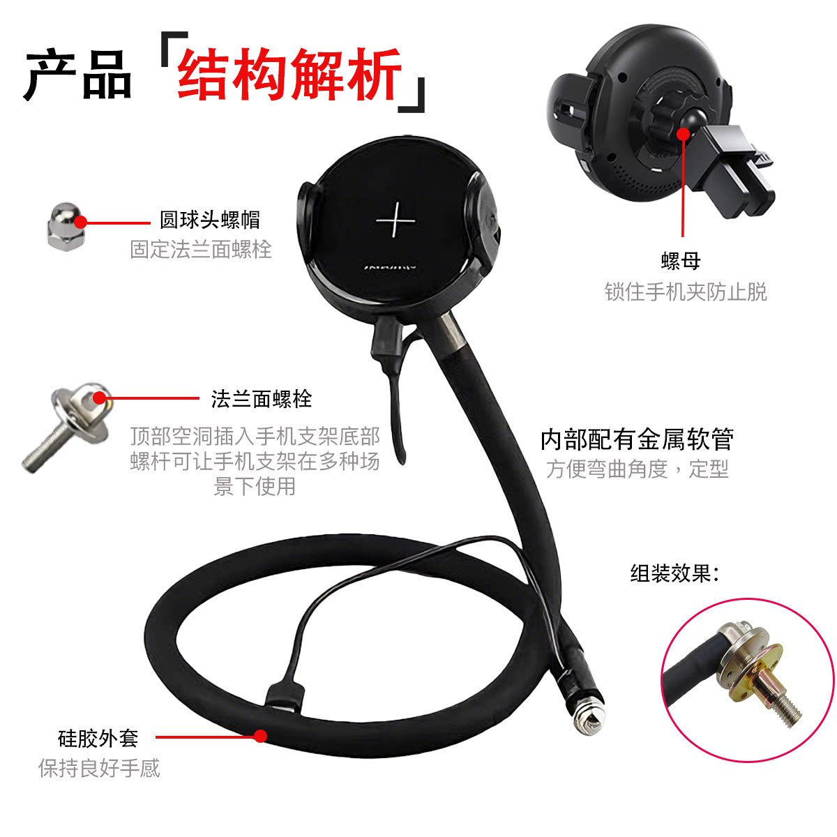 手机夹子固定器懒人直播支架替换头配件大全自拍杆专用软管17mm万向球头折叠屏平板一字夹头车载万能通用零件