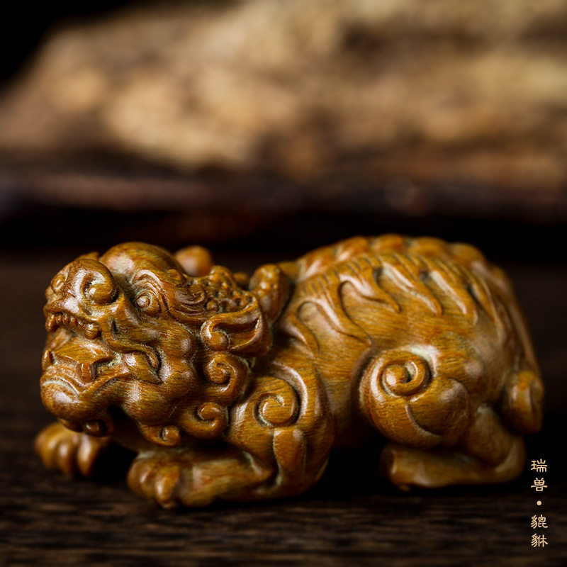 绿檀木质木雕瑞兽貔貅文玩手把件男士随身把玩送礼品桌面摆件装饰