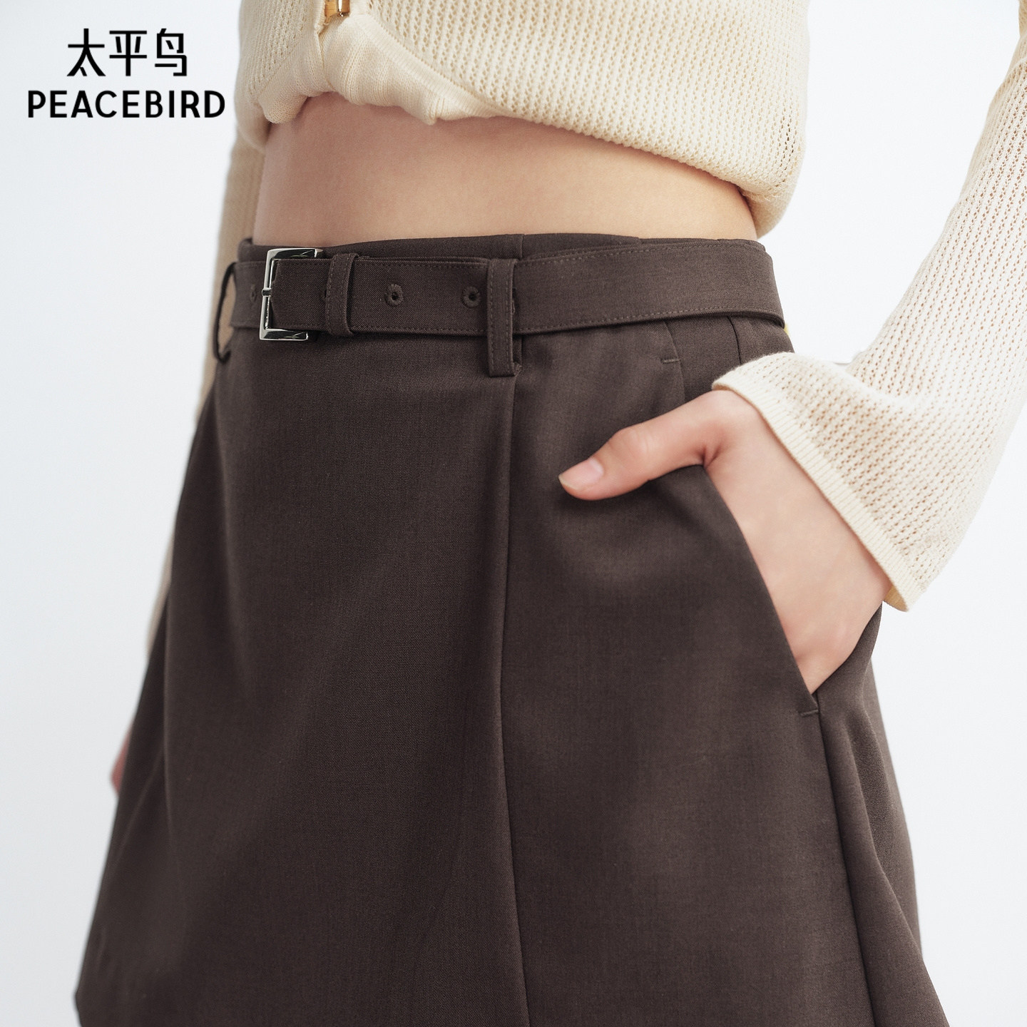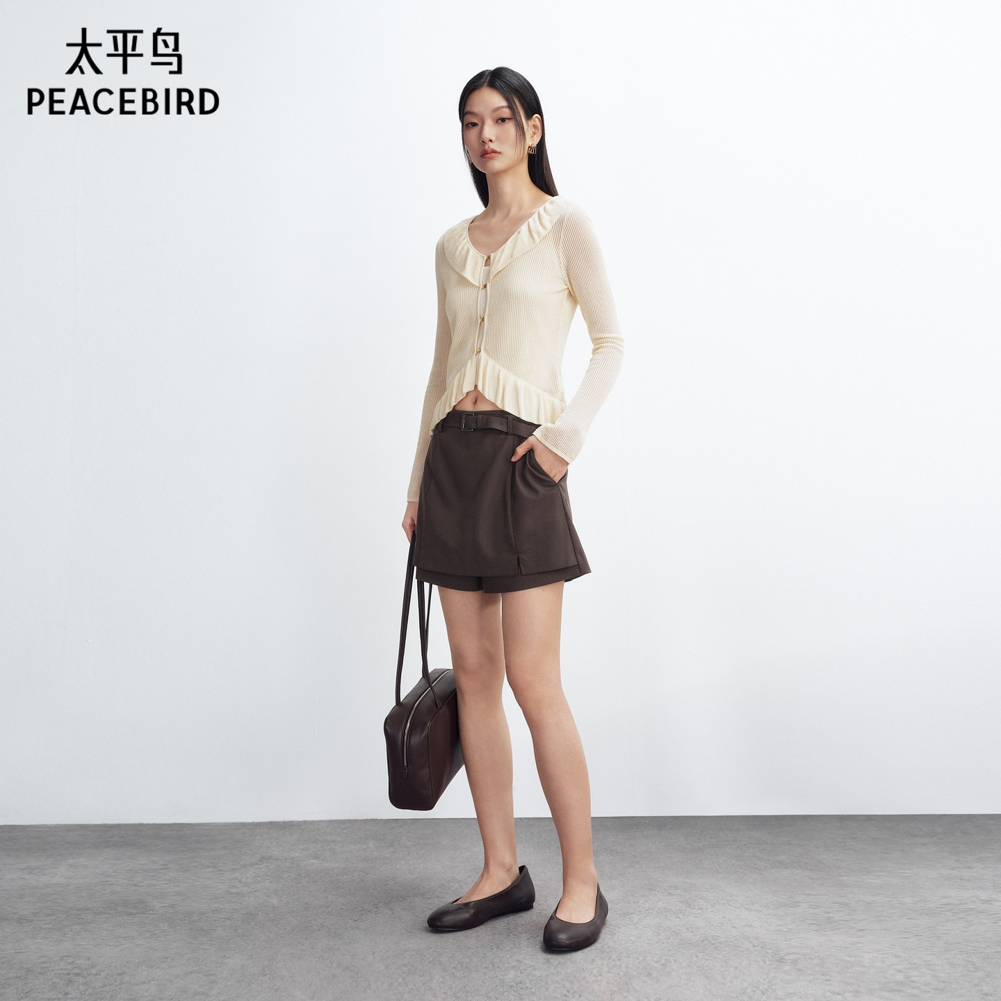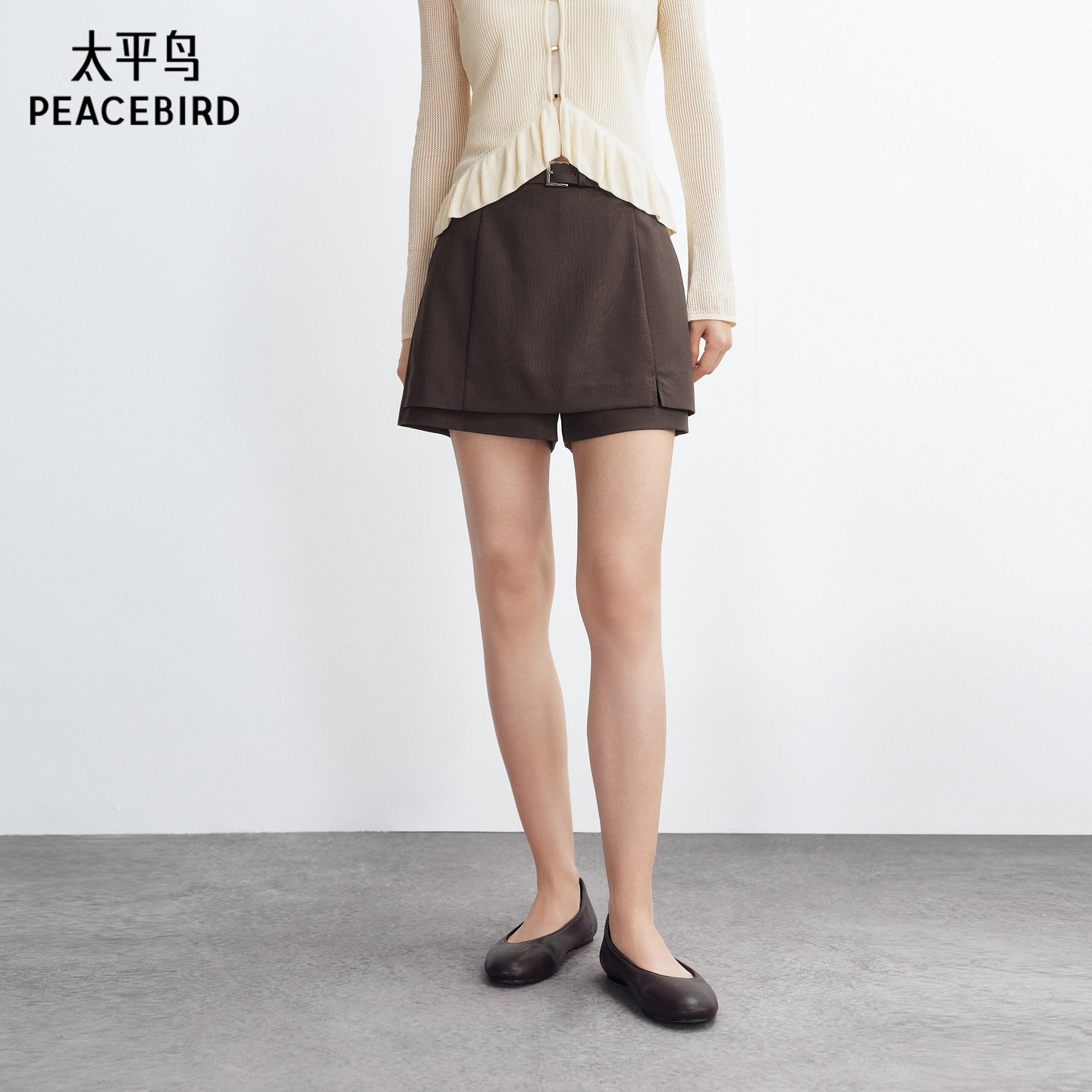 太平鸟高腰阔腿西装裙裤2026年夏季新款通勤宽松棕色A字休闲短裤