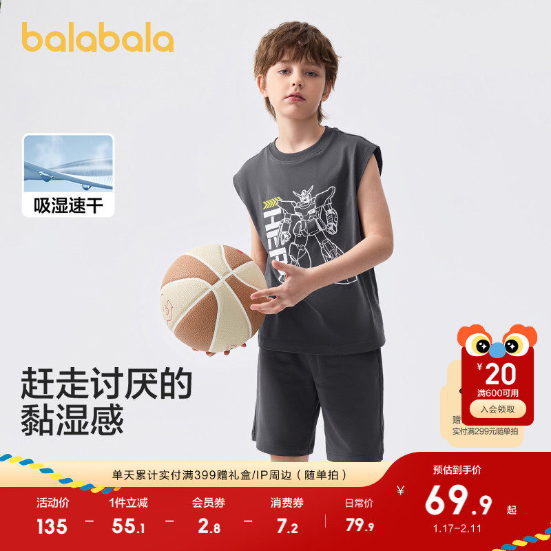 巴拉巴拉童装儿童套装男童背心2025新款夏装两件套速干透气无袖潮