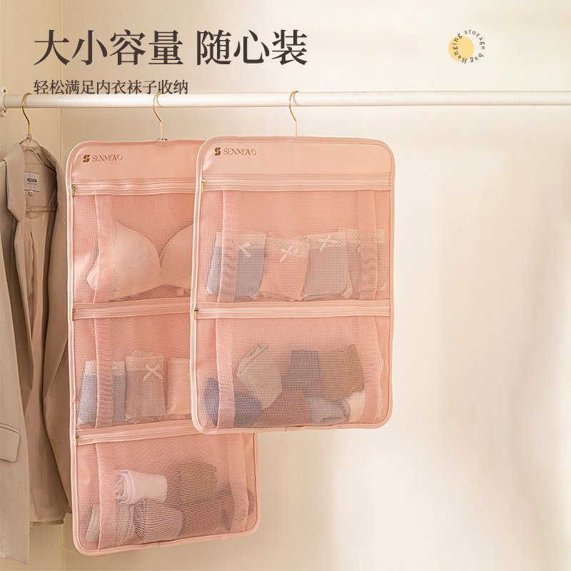 悬挂式内衣收纳袋袜子内裤文胸挂袋多层网兜出行旅行整理置物袋