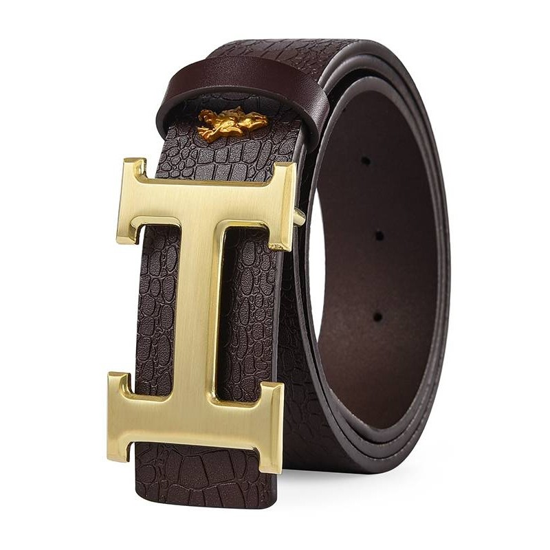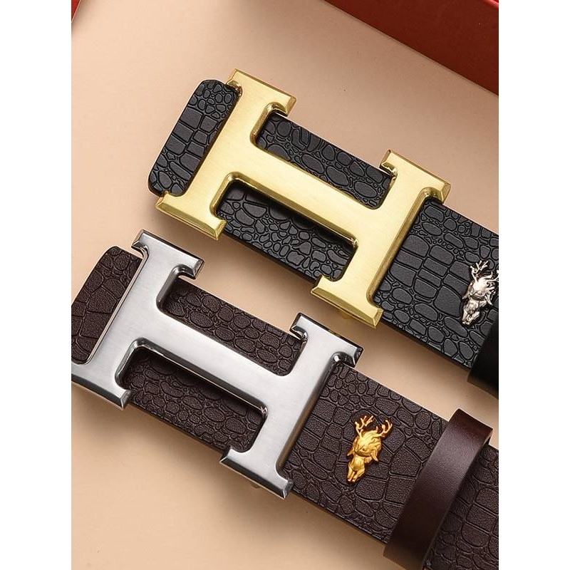 爱马男仕男士皮带新款真皮年轻人字母轻奢平滑扣高档休闲腰带男款