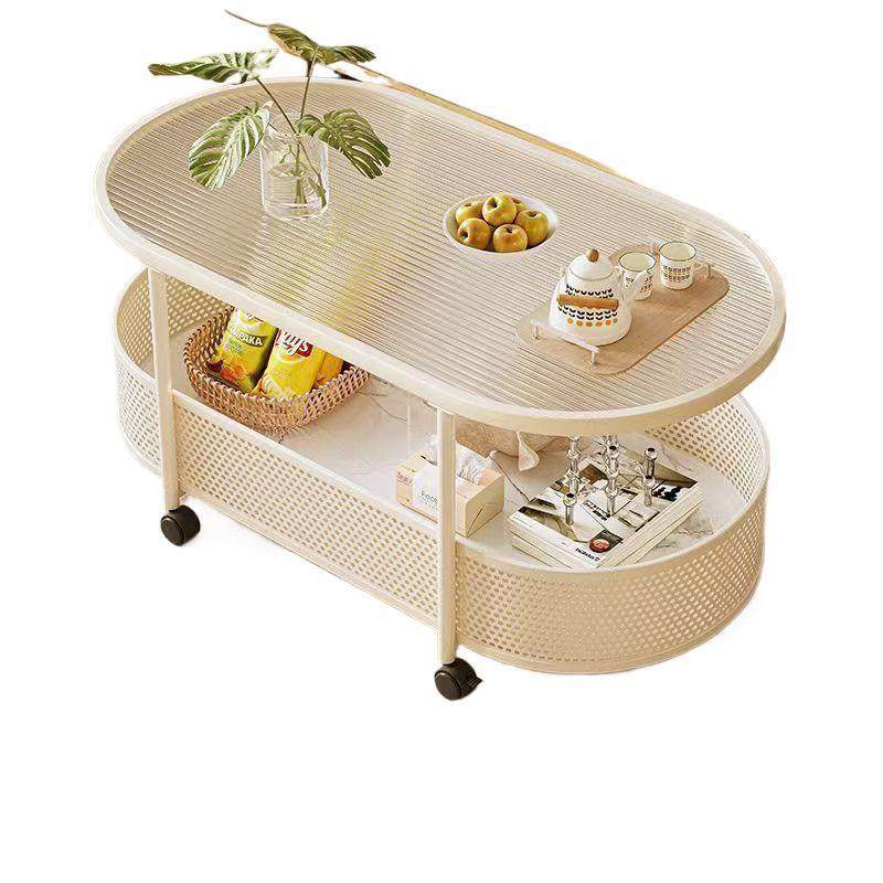 奶油风轻便可移动边几小户型客厅茶几沙发侧边带轮简约收纳小推车