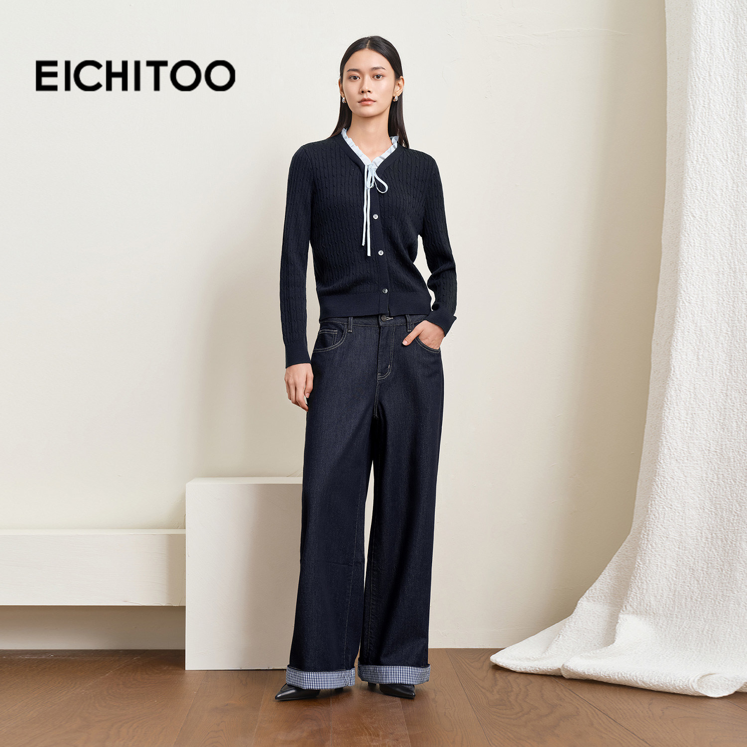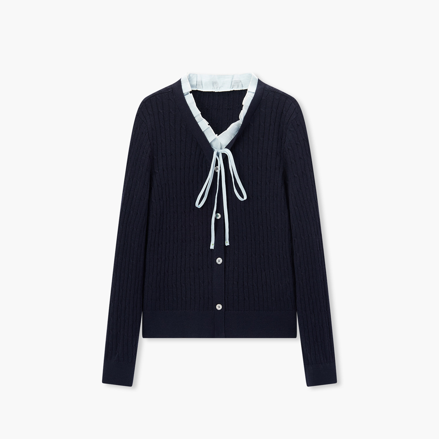 爱居兔含绵羊毛针织开衫女2025年秋季新款木耳边设计感外搭毛衣