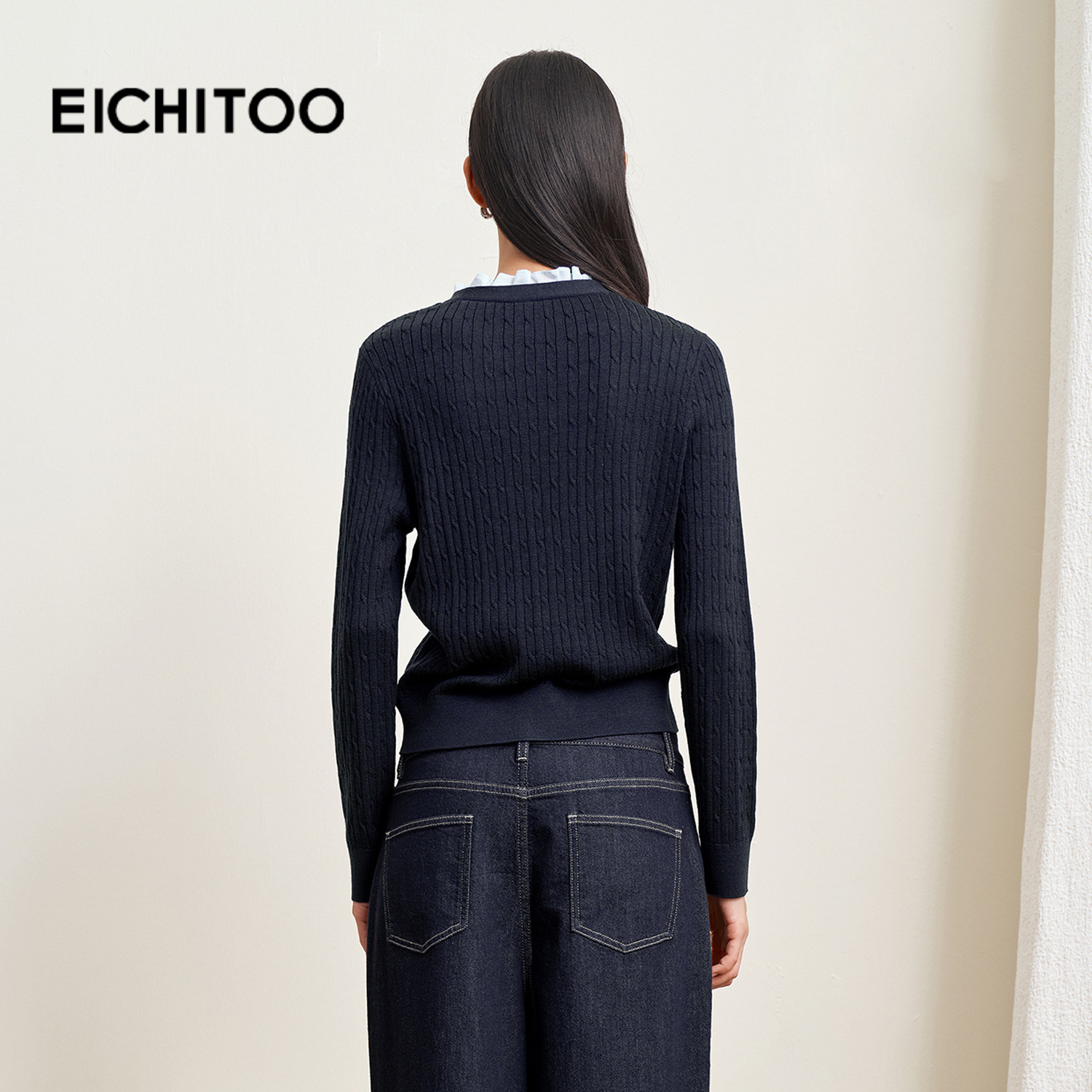 2026新款女装宽松针织开衫纯棉春秋外套纯色百搭圆领毛衣针织衫潮