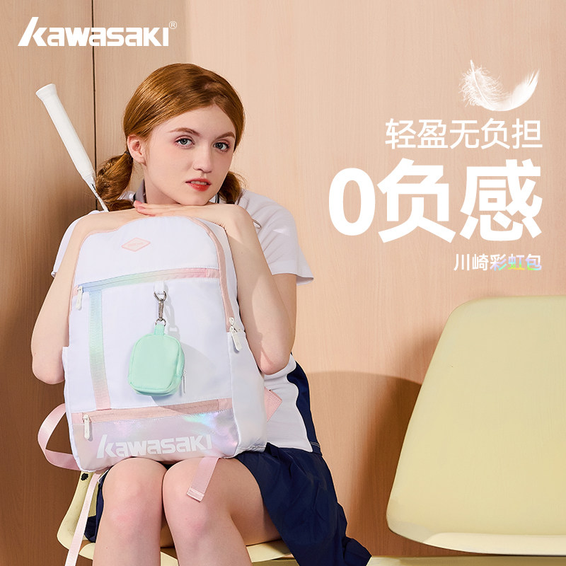 川崎羽毛球包新款双肩包彩虹多功能运动时尚背包女款专用球拍包包