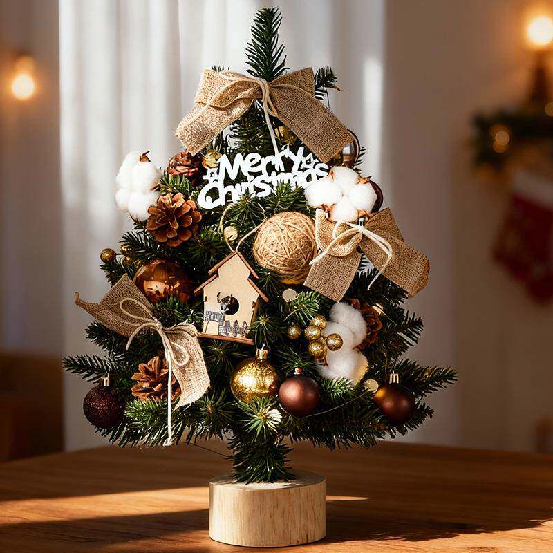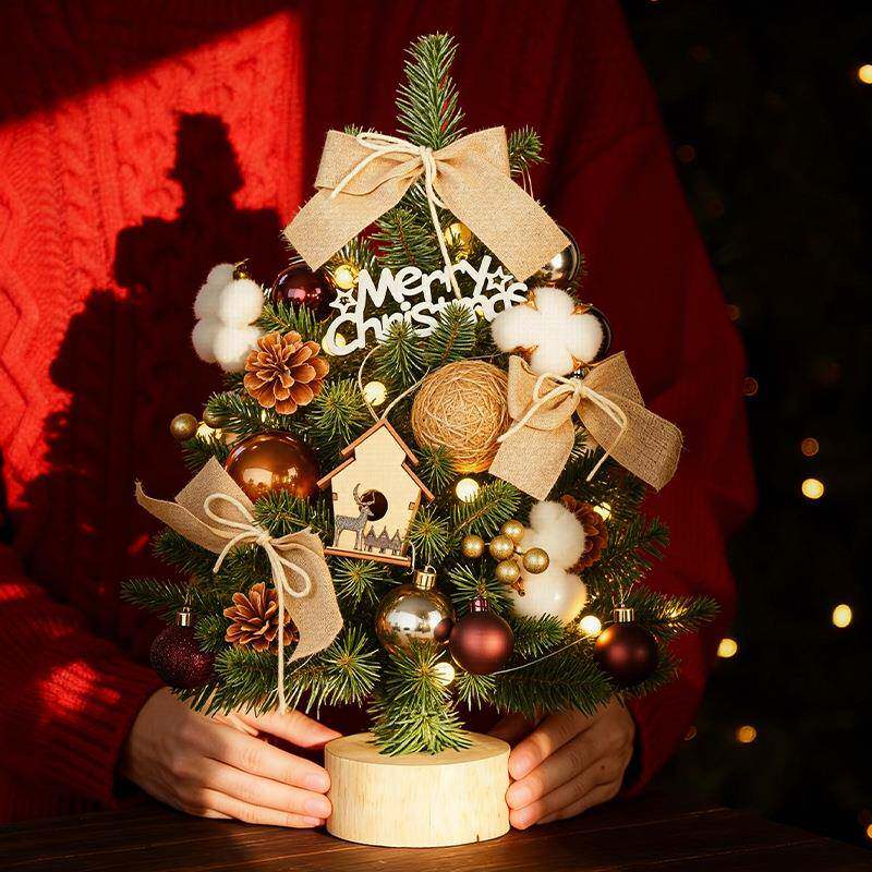 2025年新款小型圣诞树仿真带灯桌面布置摆件圣诞节迷你场景装饰品