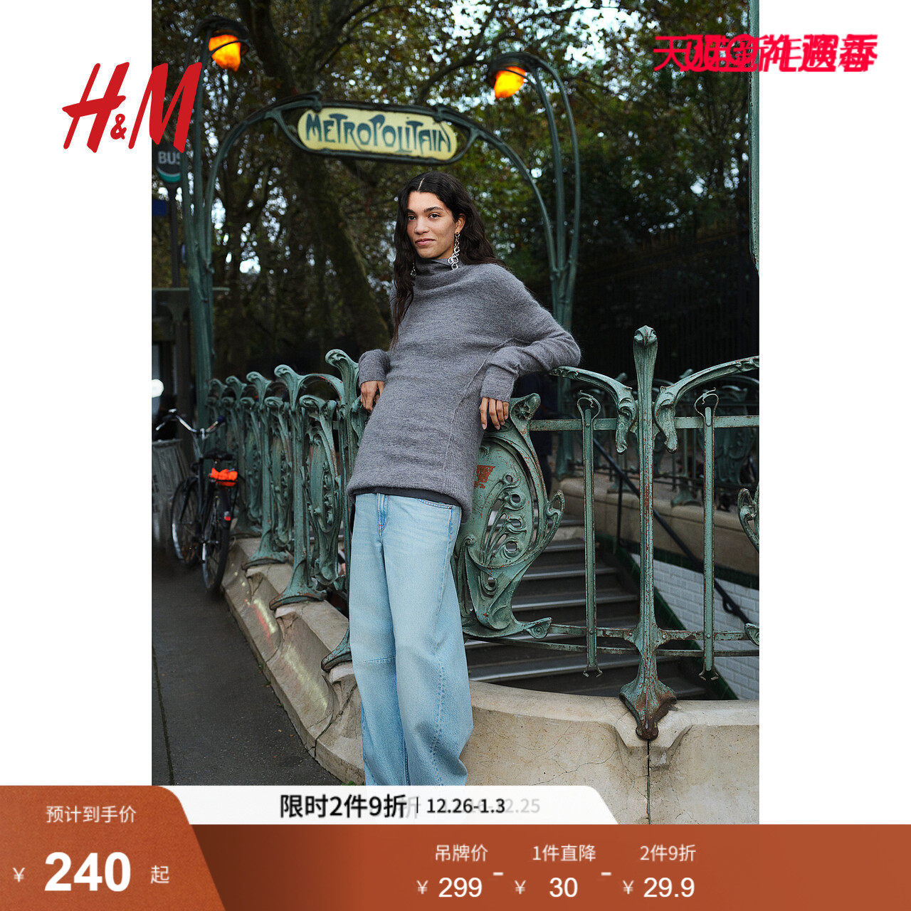 HM女装牛仔裤冬季直筒复古牛仔裤休闲筒形中腰设计潮流裤1263628