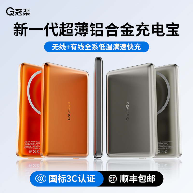 【3C认证 可上飞机】qi2磁吸充电宝无线快充金属超薄小冰片适用苹果17手机华为手表专用耳机移动电源正品小米
