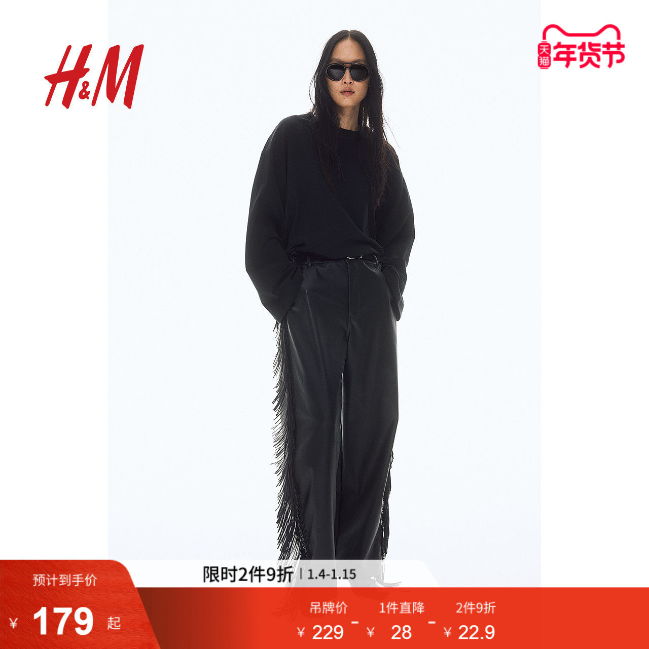 HM女装T恤冬季宽松版棉质上衣落肩长袖打底衫1281706