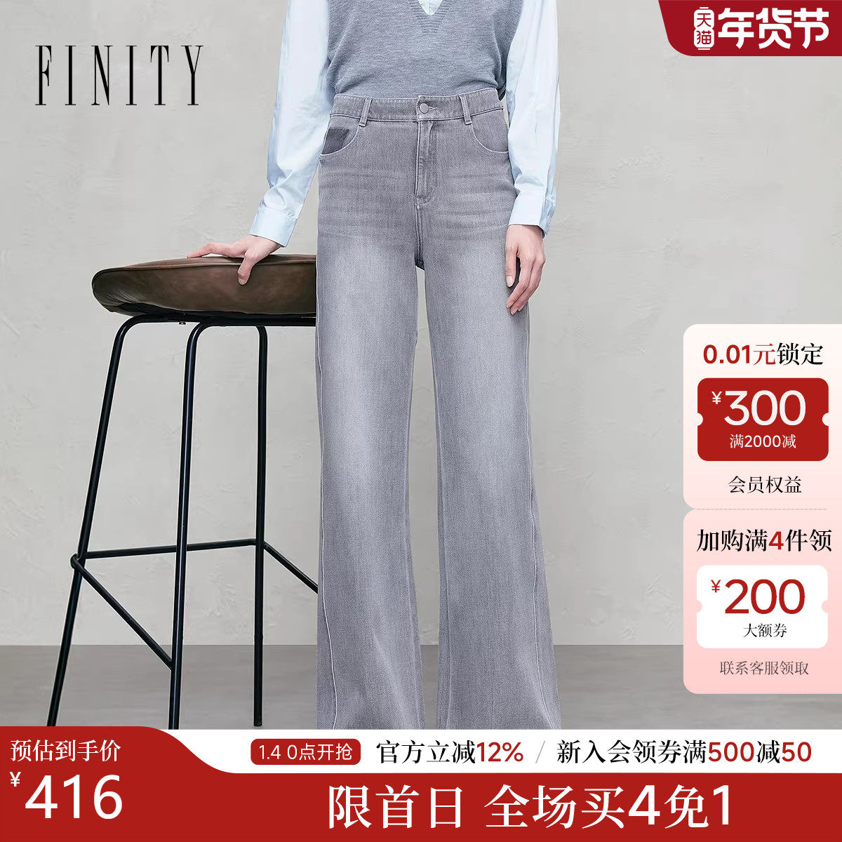 FINITY菲妮迪牛仔裤2025年秋季新款简约气质直筒通勤棉质长裤女