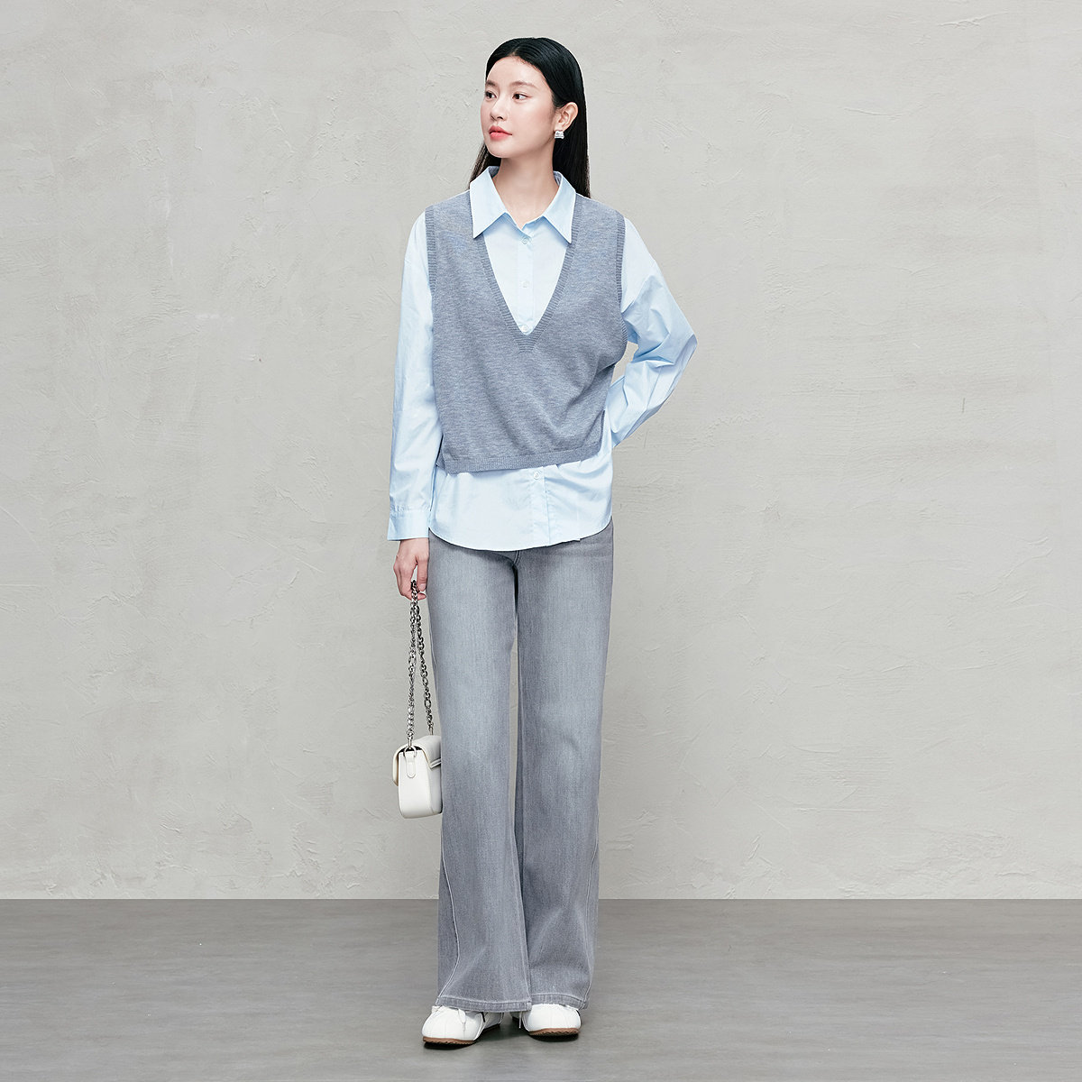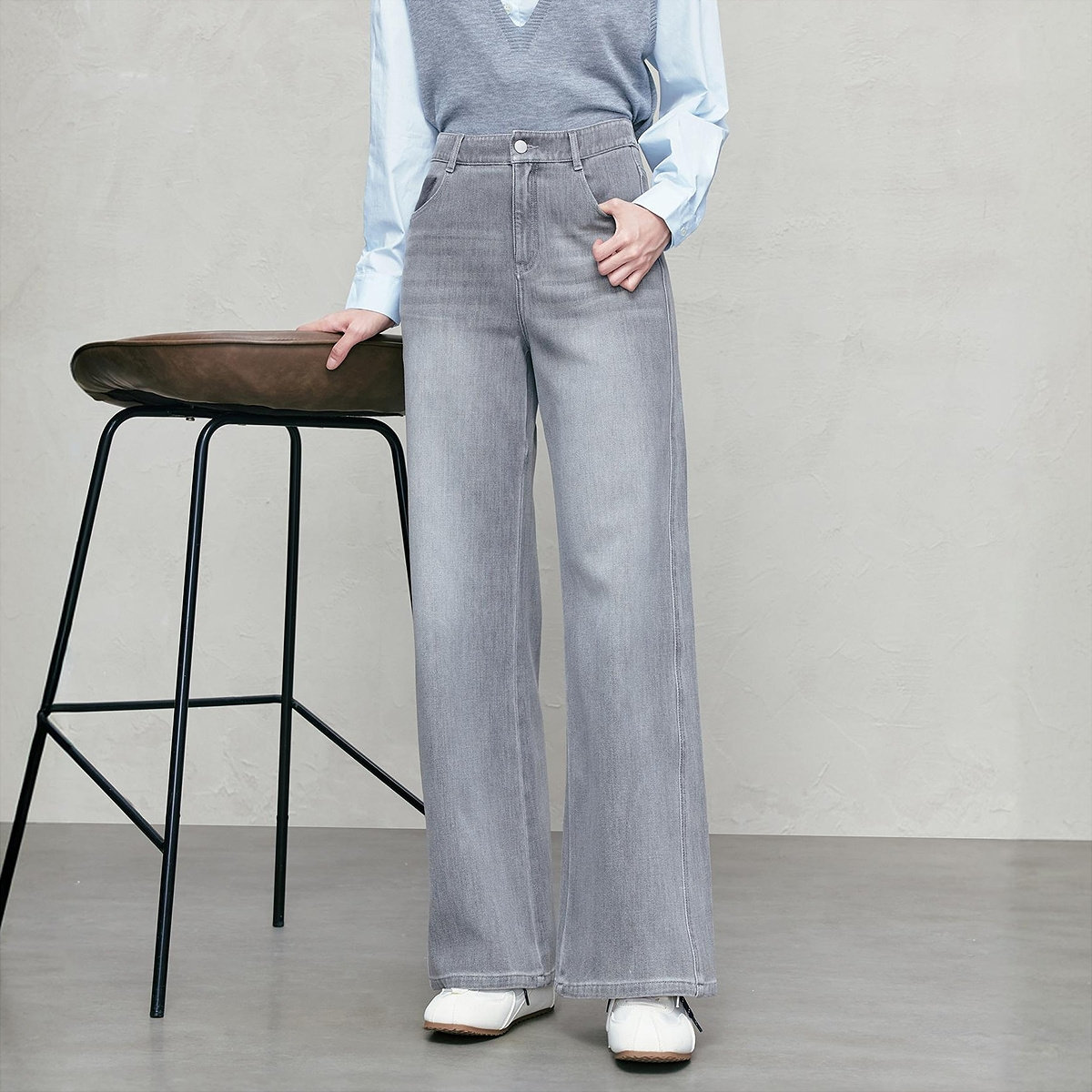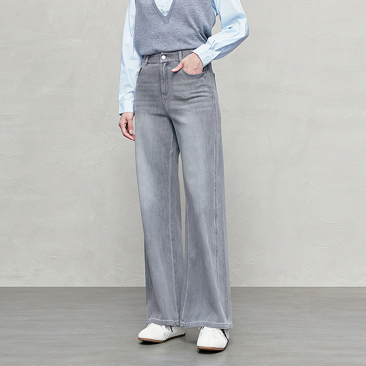 四面弹丹宁色牛仔阔腿裤25年新款宽松显瘦牛仔长裤89173