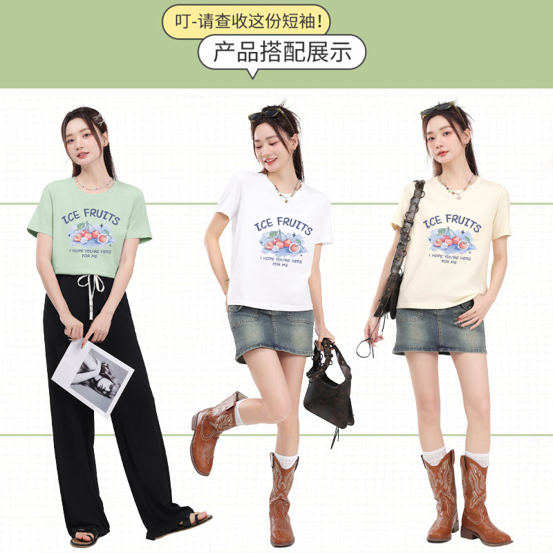 新国货100纯棉t恤女130支双面丝光棉短袖V圆领宽松大码夏季鸡心领