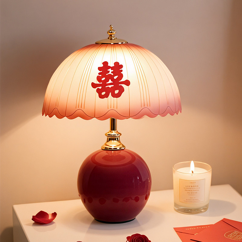 结婚台灯婚房床头灯一对红色新娘陪嫁长明灯送新婚礼物婚庆喜陶瓷
