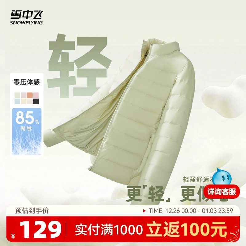 雪中飞25秋冬新款女立领短款轻薄羽绒服排骨羽绒休闲通勤居家简约