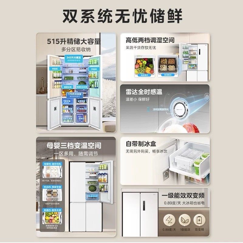 【以旧换新】美的540大容量十字双开四门风冷无霜冰箱家用双系统
