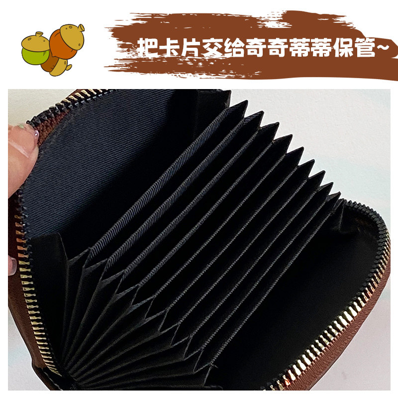 稻草人卡包女士新款证件女式牛皮小巧真皮拉链钱夹小众银行卡钱包