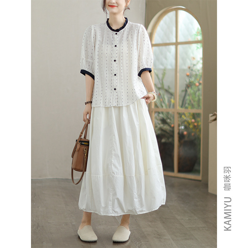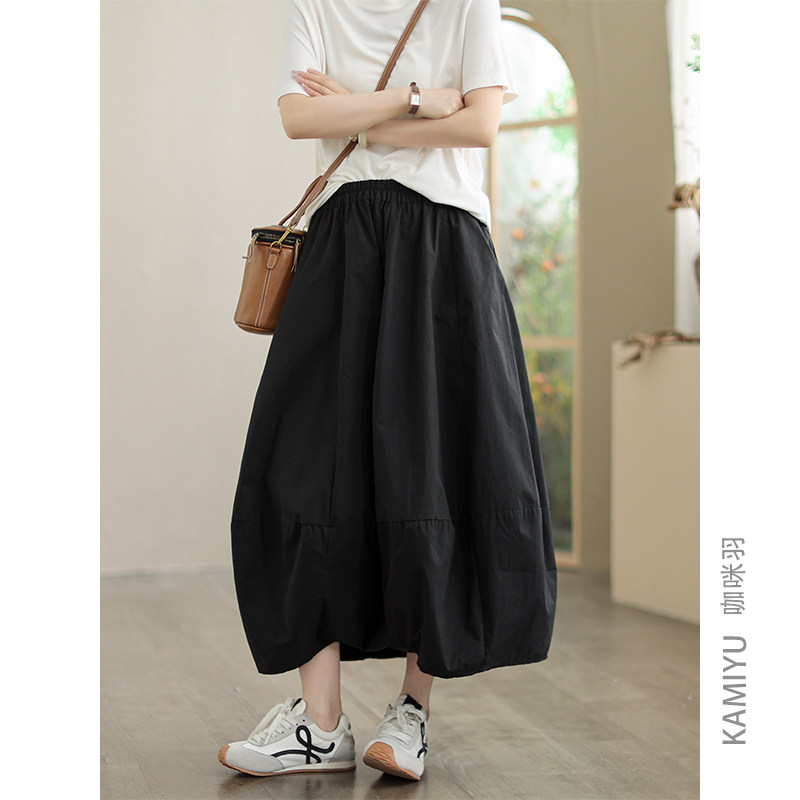 咖咪羽花苞裙女夏季新款纯色薄款女士中长款时尚通勤女装半身裙女