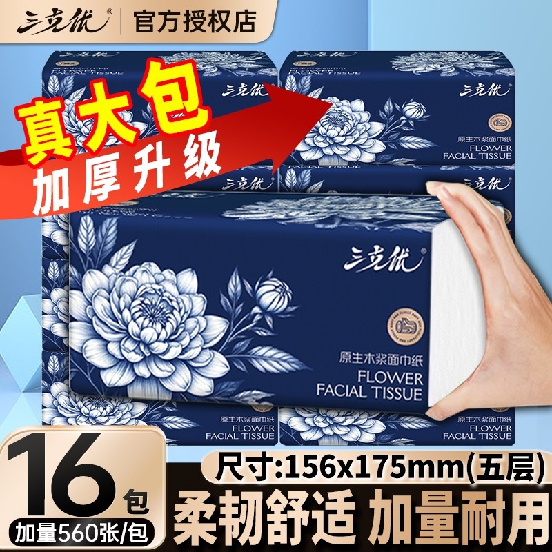 三克优纸巾抽纸加厚家用实惠装纸抽餐巾纸卫生纸面纸擦整箱抽取式