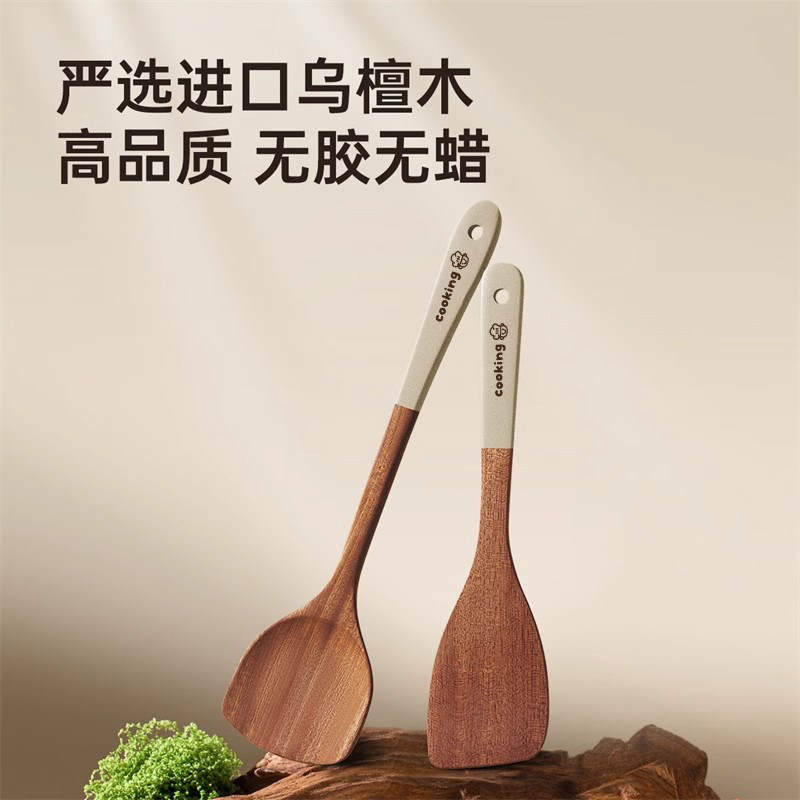 锅铲套装乌檀木不粘锅专用炒菜铲子耐高温炒勺木勺饭勺加长手柄