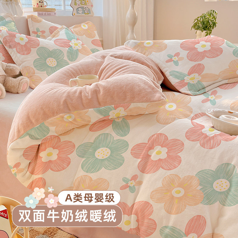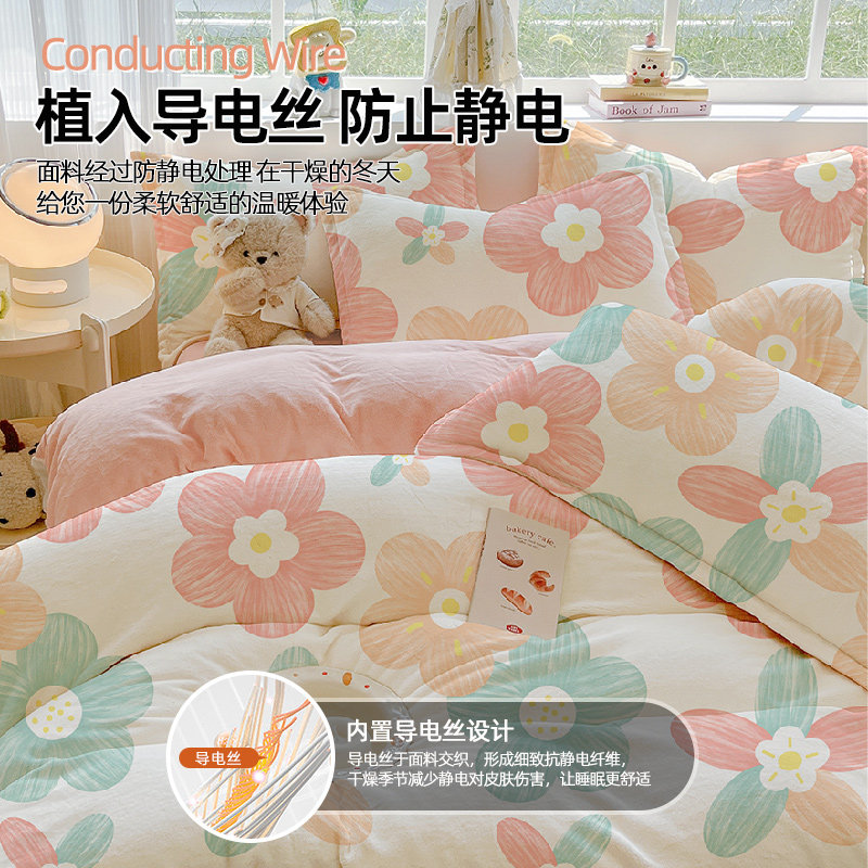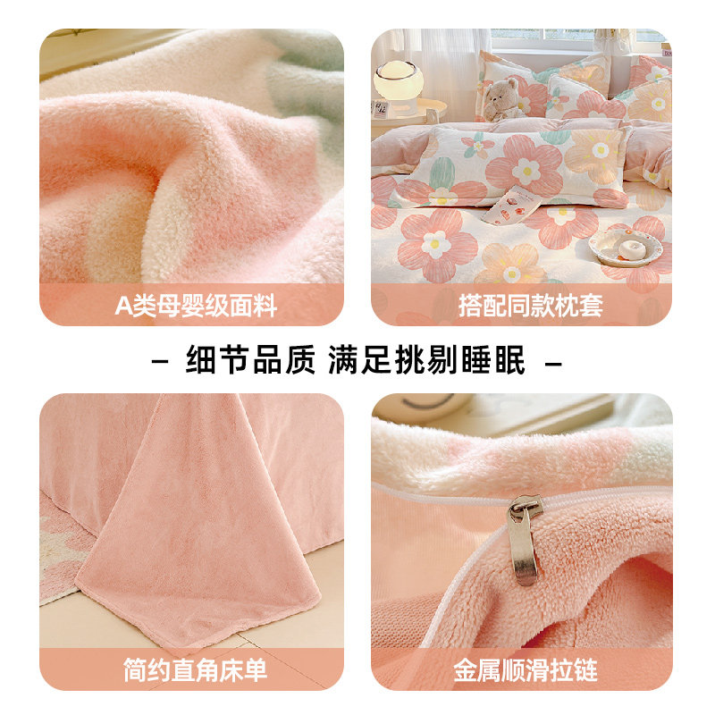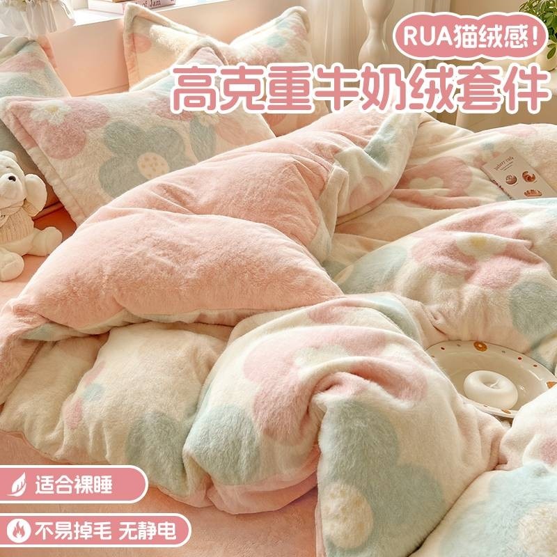 高克重牛奶绒套件床品秋冬新款被套出租屋双人床单四件套珊瑚绒