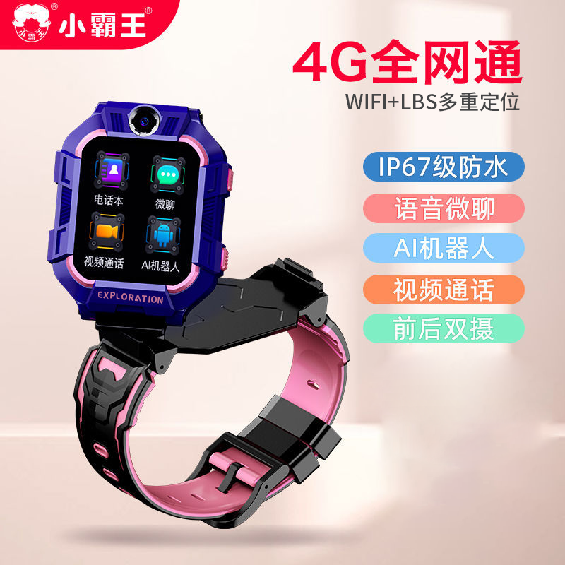 小霸王智能电话手表双向通话视频微聊定位IP67级防水上课禁用家长管控A68升级版双摄360度旋转高颜值学生专用
