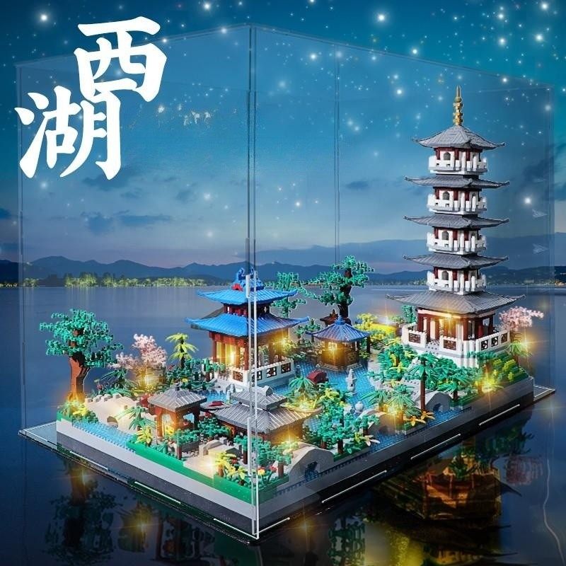 杭州西湖积木苏州园林高难度建筑拼图模型儿童男女孩益智拼装玩具
