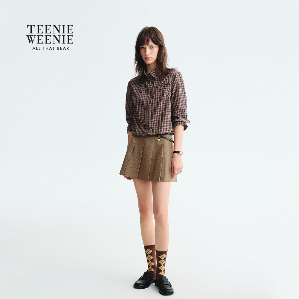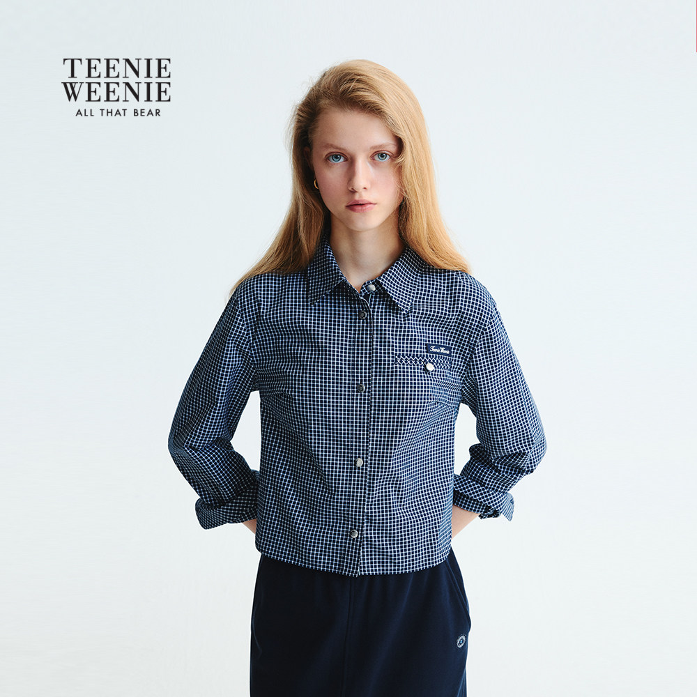 TeenieWeenie小熊奥莱衬衫2025秋季新款奥莱气质通勤短款格子衬衣